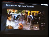 ソニーが,義理の弟カルロを街頭で痛めつけるシーンをサンプルに選び,どのような動きを盛り込めば,このシーンをリアルに再現できるかを再三にわたって検討したそうだ。