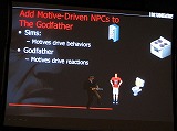 そこで物を言ったのが,EA/MAXISで14年以上も「The Sims」に関わってきたというPerry氏の経験だ。彼は,The Godfather: The Gameに,The SimsのNPCを組み込んだのである。