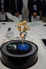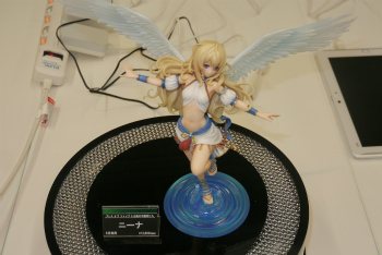 6月にコトブキヤから発売される「ニーナ」フィギュアの展示。岸田メル氏の描き下ろしイラストをモチーフに,大きな翼と豊かな髪が再現されている(関連記事)