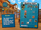 建物の裏側にいる敵には,発射角度を高めにしたBazookaによる攻撃。高所に陣取れたらSniperRifleによる狙撃。一直線上に敵が並んでいたら,BovineBlitz(飛行機から牛型爆弾を数発落とす攻撃方法)による爆撃などなど,敵の配置や状況に応じて武器を使い分け,敵に効果的にダメージを与えていくことの面白さは,デモ版でも十二分に味わうことが可能だ。