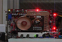 | 出力インタフェースはD-Sub,DVI-I,S/コンポジットビデオ。グラフィックスメモリ512MB版Radeon X800 XLのリファレンスカードとは異なり,デュアルDVI-I仕様ではない | |