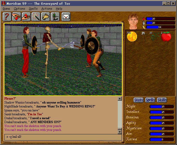 時は4年前……Ultima Onlineに先駆けること1年,EverQuestに先駆けること3年(記憶で書いているので間違えてたら教えてください)。事実上,世界初の「3DビューネットワークRPG」のパッケージとして存在した「Meridian59」が,この2000年8月31日4:00pm(PDT)でサービスを停止することになった。個人的な話で恐縮だが,私Kazuhisaが,初めてキチンと遊んで,初めてPKされて,初めてレビューを書いたネットワークRPGだったので,感慨深いものがある。