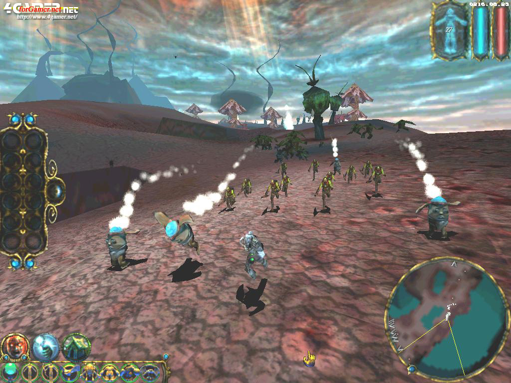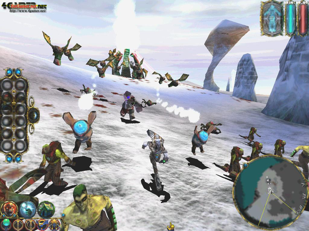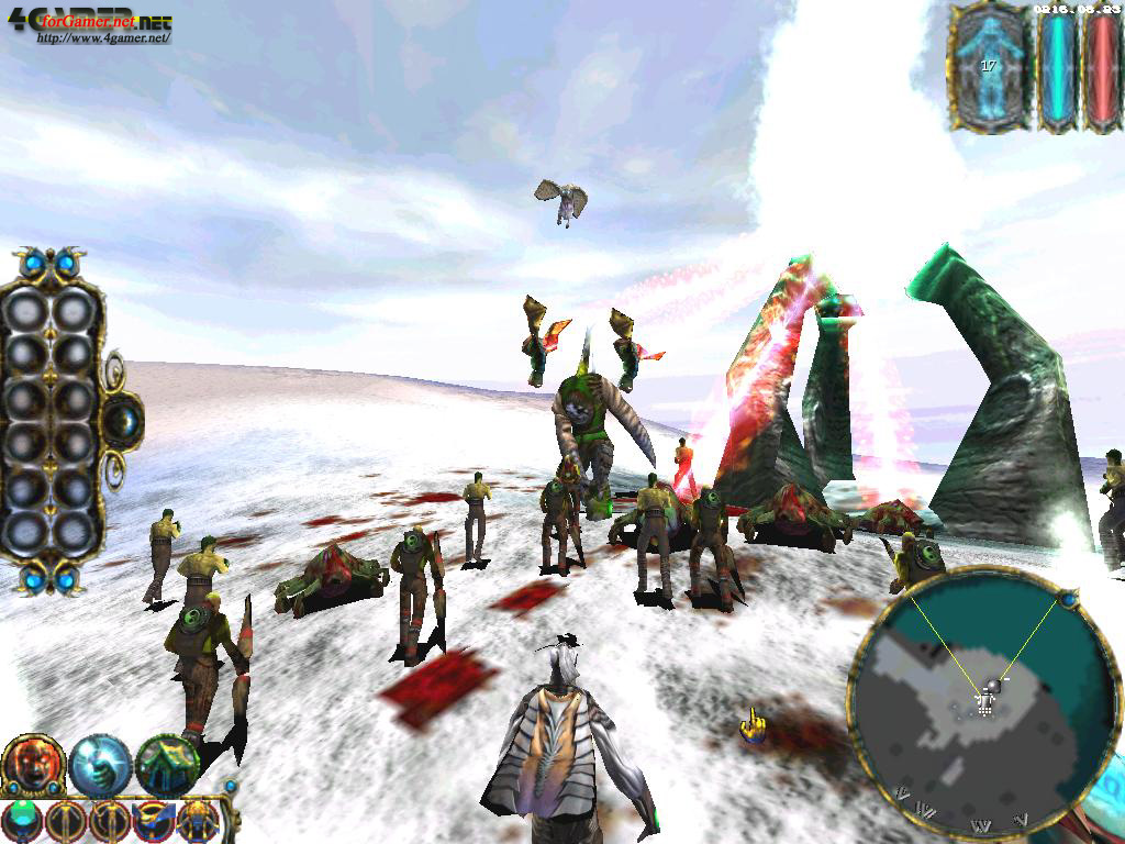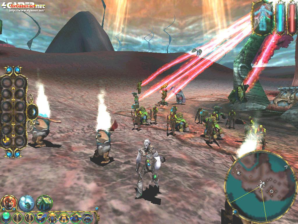 あの奇天烈乗り移り3Dアクション「メサイヤ」を開発したShiny Entertainmentが送る,次なる奇天烈ゲーム「Sacrifice」。プレイヤーは何種類かいるうちの一人の神となり,異形のモノどもを操って敵の神の軍隊をせん滅するリアルタイムストラテジー(に近い)ゲームだ。敵を捕らえて生贄として捧げ(Sacrifice[生贄]とは,ここからきている名前だろう),それによってマナを獲得して味方を増やす,といったシステム。既存のものでは「ポピュラス ザ ビギニング」に近いかもしれない。先日からβテストも始まり,開発は順調に終盤戦へ。国内ではズーが日本語版の販売を行う(2001年初頭予定)のだが,今回特別にβ版で撮影したScreenshotsを入手できた。いつもいつもNewsサイトにUpされる「作り画面」や「イメージカット」などでなく,ホンモノのβ版から撮影したものだ。発売の暁には,これらの画面がまんまモニターで再現されると思っていいだろう。 以下にScreenshotsを山ほど用意したので,Sacrificeの妖しい世界を十分に堪能してほしい。撮影したときにちょっとガンマ設定をミスったらしく全体に白っぽいが,まぁそれはそれ。