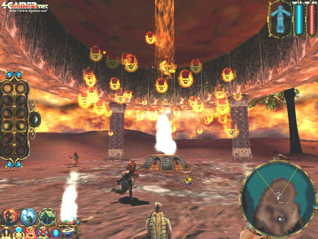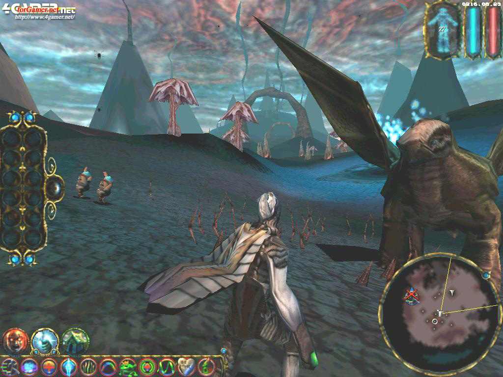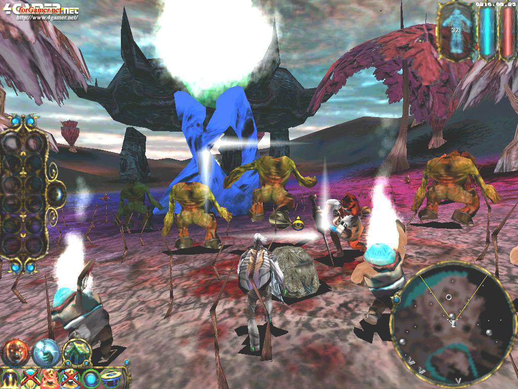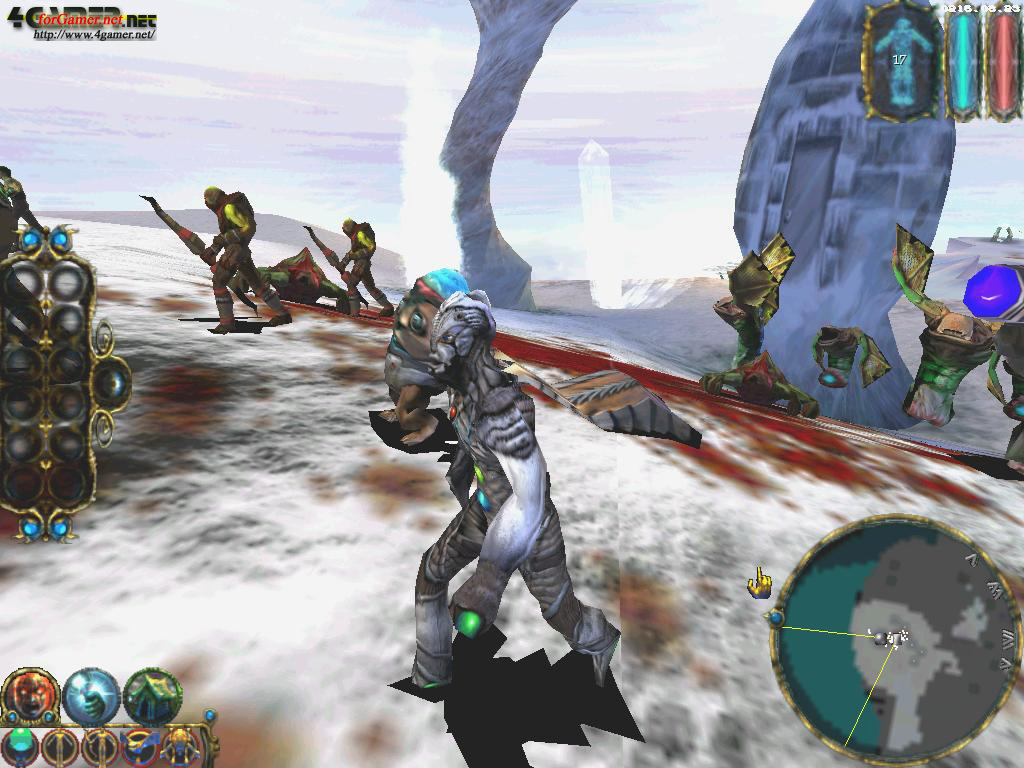 あの奇天烈乗り移り3Dアクション「メサイヤ」を開発したShiny Entertainmentが送る,次なる奇天烈ゲーム「Sacrifice」。プレイヤーは何種類かいるうちの一人の神となり,異形のモノどもを操って敵の神の軍隊をせん滅するリアルタイムストラテジー(に近い)ゲームだ。敵を捕らえて生贄として捧げ(Sacrifice[生贄]とは,ここからきている名前だろう),それによってマナを獲得して味方を増やす,といったシステム。既存のものでは「ポピュラス ザ ビギニング」に近いかもしれない。先日からβテストも始まり,開発は順調に終盤戦へ。国内ではズーが日本語版の販売を行う(2001年初頭予定)のだが,今回特別にβ版で撮影したScreenshotsを入手できた。いつもいつもNewsサイトにUpされる「作り画面」や「イメージカット」などでなく,ホンモノのβ版から撮影したものだ。発売の暁には,これらの画面がまんまモニターで再現されると思っていいだろう。 以下にScreenshotsを山ほど用意したので,Sacrificeの妖しい世界を十分に堪能してほしい。撮影したときにちょっとガンマ設定をミスったらしく全体に白っぽいが,まぁそれはそれ。