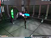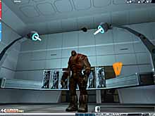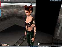 Loginすると,暗い部屋のバーで囲まれた小さなエリアに,裸の(というかスキンなしの)キャラクターが出現した。気持ち悪い。一瞬自キャラなのかと思った(なんせSFだし)。ふむふむ,UOみたいにじわじわとキャラクターが出来上がっていくシステムなのねんと思いつつ,WizardryからUOまで,ずっと文字情報だけでキャラクターを作ってきた習慣があり,一体どうやってキャラメイクするのかまったく分からない。