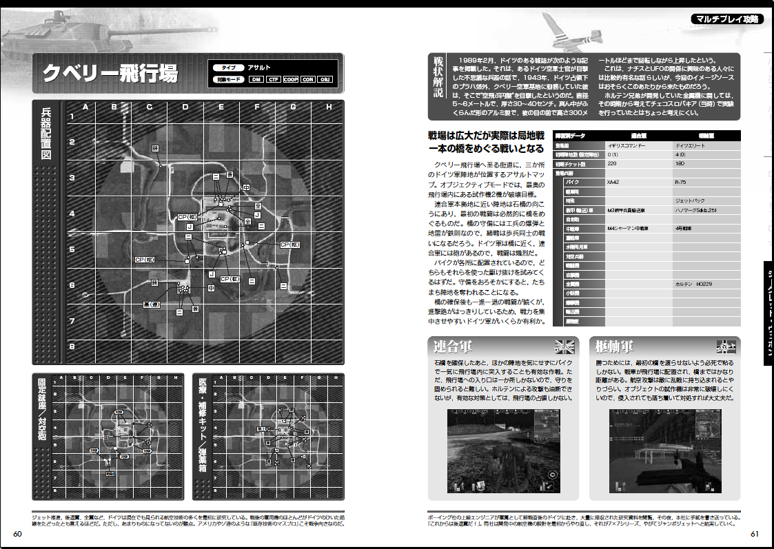- 第1章:マルチプレイ攻略……全マップの登場兵器,補給ポイント,固定砲座などの位置マーキングと戦術を解説
