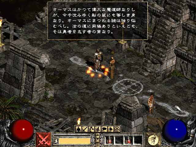●DiabloII日本語版 9月11日から10月7日まで,forGamer.netで定期的に掲載してきた,DiabloII日本語版のオリジナル情報をここに全部まとめてあるので,ぜひご参考までに。 ・Vol.1 DiabloII 日本語版のデキやいかに? 「一体いつ出るのだろう」とか「英語版が全部はけるまでは出ないんじゃないか」とか「実は作ってないんじゃないの?」とかいろいろと噂されていたDiabloIIの日本語版だが,発売日がキチンと決定した。ずっと待ってた人,よかったですね:) 「日本語版」といっても,雰囲気壊しまくりの吹き替えなどはせず,ゲーム内のテキストをすべて日本語化しただけのもの。アイテムやコマンドの説明は当然のこと,クエストログや各ステージでのメッセージウィンドウに至るまで,「ゲーム内表示の完全日本語化」を実現しているわけだ。ちなみに気になるアイテム名のPrefix,Suffix,特殊効果だが……むぅ,こうきたか。個人的にはこれもちょっとなぁ……と思うのだが。