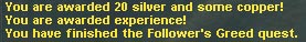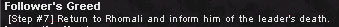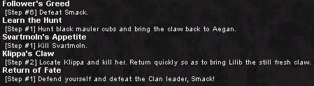 これがQuest Window。依頼を受けた各Questの現在の状況を一覧で確認できるのだ。わざわざメモとらんでも,これを見れば一発っていう優れもの。ちなみに今回のは上から二つ目のFollower's Questってやつ。ちゃんとKill Jabryllaって書いてあるっしょ。