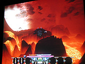 プレイヤーキャラクターとはしたものの,ゲームは第1人称視点型のコクピット画面か,宇宙飛行艇の後方にカメラを付けた第3人称視点でプレイすることとなり,Freelancerのようにプレイヤーキャラクターを確認することはできないようだ。プレイヤーは,ほかのプレイヤーやNPCの依頼主から与えられたミッションをこなして報酬を得ることで,新しい飛行艇や最新パーツを購入できる。ミッションなどで得た特殊アイテムは,プレイヤーのレベルや職業に合わせて調節されるため,Everquestのように,レベルの低いプレイヤーが装備できない強力なアイテムを偶然手に入れる,というようなことは起こらないものと思われる。 ゲーム世界は広大で,1つのセクターで150人程度のプレイヤーがプレイすることになる。セクターとは"宇宙ステーションや惑星を中心にした空間"のことで,一つのサーバーに100セクターが用意されるとのことだ。これらのセクターには,ジャンプゲートを利用して瞬間移動するという設定で,ローディングの存在を感じさせない演出をしている。 プレイヤーは宇宙を航行するばかりでなく,実際に惑星の地表近くを飛来することが可能で,星によっては特殊な鉱石資源などが用意されている。今回のデモでは,溶岩が噴き出す生まれたばかりの惑星付近を航行するシーンが確認できた。 ちなみにE&Bはプレイヤーが死んだときのペナルティーがユニークで,経験値や金銭が減らされることはない。プレイヤーは,ヘルスが最低限のレベルで再生されるが"経験値借款"方式を採用しているため,機体を修理し,その借りを返すまでは経験値アップなしの状態でプレイし続けられるのだ。