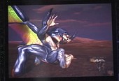 ここでのムービーファイルは,ページ下のキャプチャ画面に対応させて並べると……。 1 2 3 4 の画面がそれぞれ, 1 Project:K-X(仮称)のムービー 38.54MB/3分52秒 2 セガの新作2種のムービー 8.94MB/54秒 3 NVIDIAのデモのXbox移植版 38.63MB/3分53秒 4 新作4作のデモムービー 18.79MB/1分53秒 以下に説明をば。 ■Project:K-X(仮称)のムービー ビル・ゲイツは,日本国内に世界規模のゲームスタジオの設立を声高らかに宣言した。そこでプロデューサ石井精一氏を中心に開発が進められているのがこの「プロジェクト:K-X」(仮称)。石井氏はナムコ&スクエアの共同開発格闘ゲーム「エアガイツ」などの制作者として知られている人物。マイクロソフトはこの自社ゲームスタジオで,国内の有名クリエイター達を集めまくっている模様だ。 この映像で見るべきは,筋肉の躍動感とプロジェクション・シャドウの表現。Xboxの表現力……というよりは,NV20(GeForce3コア)のパワーとプログラマのセンスの勝利という感じ。動きのパターンは限られているようだが,この躍動感あふれる動きは必見! ■セガの新作2種のムービー セガの特別顧問香山哲氏が基調講演に登場。セガがXboxに対してオリジナルタイトルをリリースしていく方針を明らかにした。この映像はその開発途中版のもの。最初の映像は3Dアクションゲーム「ガンヴァルキリー」「ジェット セット ラジオ フューチャー」(仮称)。後者は,DC版のモノよりも一層極まったトゥーンシェイダーによるグラフィックが見どころとなる。 余談だが,この映像のBGMは昔懐かしセガサターンの「パンツァドラグーン」のもの。すでにご存じだろうが,今回のゲームショウでは,実際にXbox版の「パンツァドラグーン」が登場することも明らかにされた。 ■NVIDIAのデモのXbox移植版 NVIDIAがGeForce3の発表のときにも使ったデモプログラムを,Xbox用に移植したモノ。PCからXboxへのコンバージョンはわずか3時間で終了したという。ちなみにこのキャラクターのポリゴン数は1万8000ポリゴン。これは,少し前までのムービー制作用のキャラクターのレベルに相当するクオリティ。PCゲームもこのクオリティに追従していくことだろう。 ■新作4作のデモムービー スノボーシミュレータ「Amped」,アメフトゲーム「NFL Fever2002」,アクションアドベンチャー「Azurik」,3Dシューティング「HALO」の映像。バックの解説の声の主はマイクロソフトXbox事業部制作統括部の宮田敏幸氏。宮田氏はポポロクロイス物語などの制作に携わってきた元SCE系の人だが,いつの間にかマイクロソフトの人になっていた。この4タイトルについては,Xbox同時発売に向けて日本語ローカライズが進められている。 しかしこの,ガトリング砲の着弾が妙に心地よいHALOだが,PC版って一体いつなんだろう……。 上記一覧のソフト名の部分がムービーファイルへのLinkとなっているので,速攻でダウンすべし! (トライゼット 西川善司)