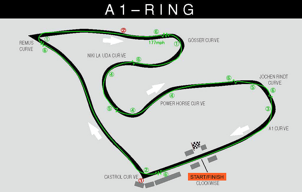 A1リンクのあるシュピールベルグ(Spielberg)は,周囲に牛を放牧している牧草地やトウモロコシ畑が隣接する,山あいの静かな村だ。それが毎年F1の行われる週末だけ,特別な賑わいを見せるのだ。コースにはオーストリア出身の2人のワールドチャンピオン,ニキラウダとヨッヘンリントの名前を付けられたコーナーがある。ちなみにゲルハルト・ベルガーもオーストリア出身だ。