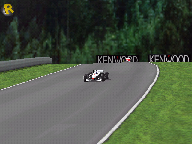 カストロールコーナー(図中CASTROL CURVE)を,ミカ・ハッキネンはコース幅いっぱいゼブラゾーンまで使ってクリアする。そこからまた長い登りの直線が続き,タイトな