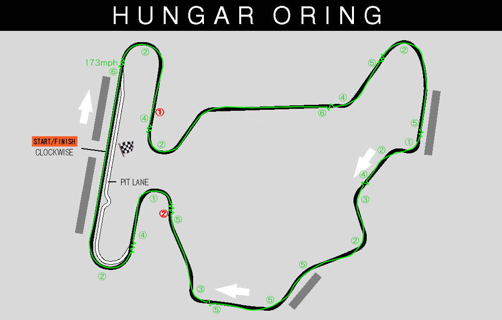 さてマシンセッティングだが,ここはF1が開催されるコースの中ではモナコに次ぐ低速サーキット。うんざりするほどカーブが続くから,ダウンフォースを強くかける必要がある。直線らしい直線はメインスタンド前の1か所だけ。あとはクネクネと常に曲がっている忙しいコースだ。