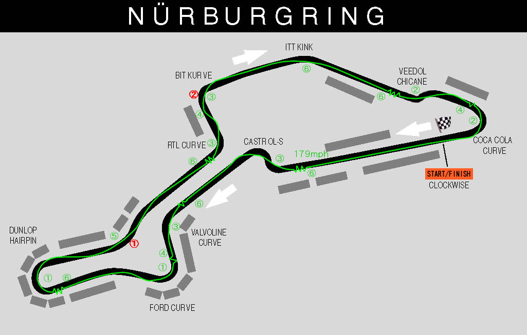 ニュルブルクリンクでのレースは,'98年まではルクセンブルクGP,'99年以降はヨーロッパグランプリと称して開催しているが,これはF1グランプリは1国1GPという原則があるためだ。実はニュルブルクリンクはドイツにあるので,言ってみればセコイ誤魔化しなのだ。かつては日本でもパシフィックGPと称して岡山のTIサーキットと,鈴鹿の日本GPの2GPが開催されたこともあった。ここは黙って目をつぶるのが大人というものかもしれない(^^;