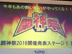 タイトーは本日(2月19日),千葉・幕張メッセで開催中の「ジャパン アミューズメント エキスポ2016」で,同社主催のアーケード格闘ゲーム全国大会「闘神祭2016」の一部競技種目を発表した。昨年からの続投となる「ニトロプラス ブラスターズ」「ウルトラストリートファイターIV」に加え,「BLAZBLUE CENTRALFICTION」の3タイトルだ。