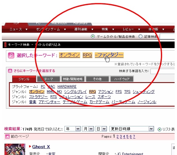 ゲームタイトル/メーカー名検索