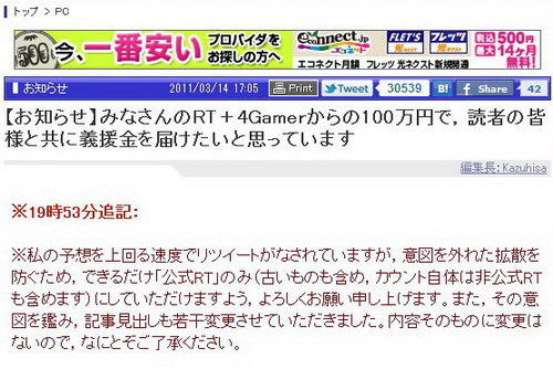 【お知らせ】4Gamerでの皆様からの義援金募集活動は終了いたしました
