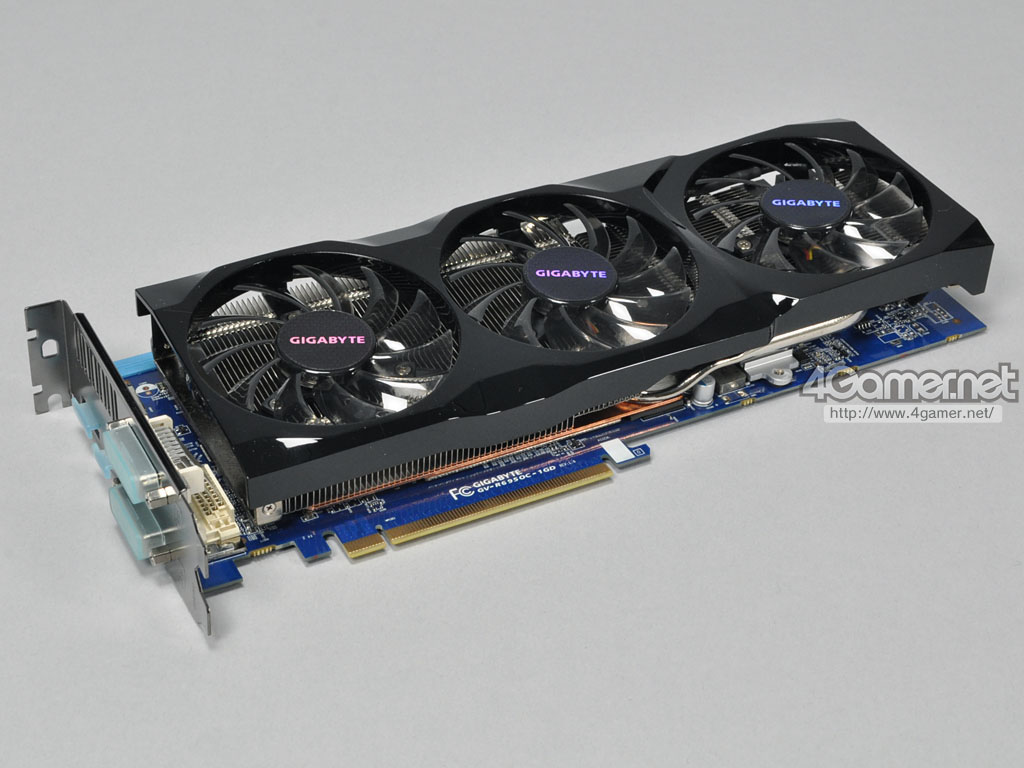 3連ファン仕様のオリジナルクーラー「WINDFORCE 3X」を搭載したRadeon HD 6950カード。GIGA-BYTE TECHNOLOGY独自の品質規格「Ultra Durable VGA」もクリアしています(関連記事)。