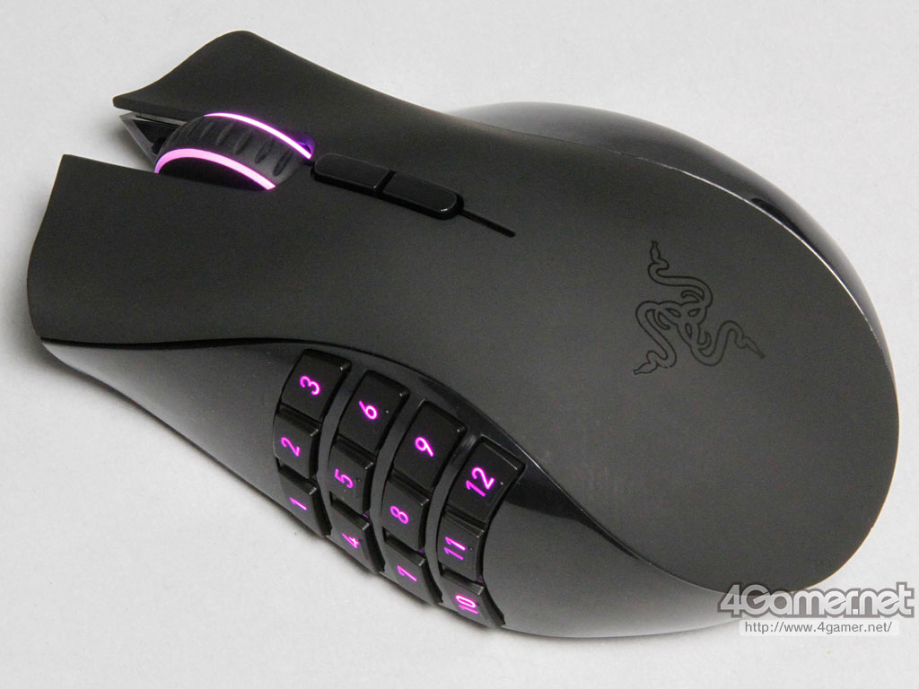 本体左サイドに12ボタンを搭載した,PC向けの「MMO用マウス」。ワイヤレス&ワイヤードのどちらでも使え,付属する3種類のパネルで本体右サイドの形状をカスタマイズできるのが大きな特徴となっています(レビュー記事)。