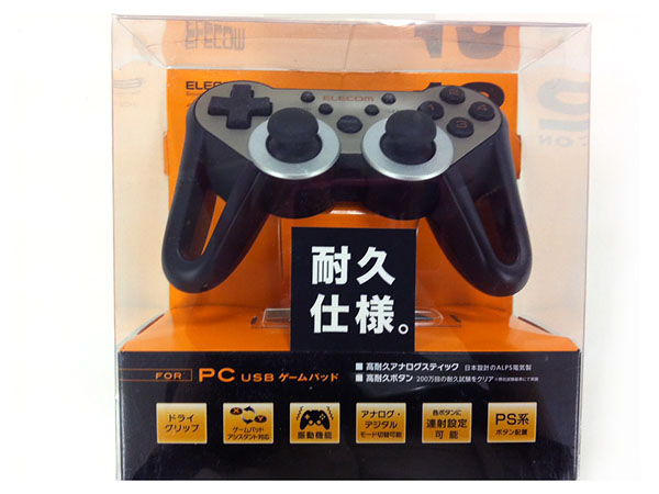 MMORPG「BraveSongOnline」(PC)推奨のゲームパッドです。高耐久アナログスティックと高耐久ボタンがウリのエレコム製パッド「JC-U3312SSVD」となります(関連記事)。