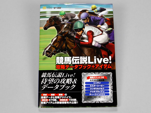 オンライン競走馬育成シミュレーション「競馬伝説Live!」(PC)の攻略データブック。EX種牡馬カード「シンザン」「ミスターシービー」「シンボリルドルフ」「ナリタブライアン」「ディープインパクト」の中から抽選で1枚を入手できるアイテムクーポンが付属します。