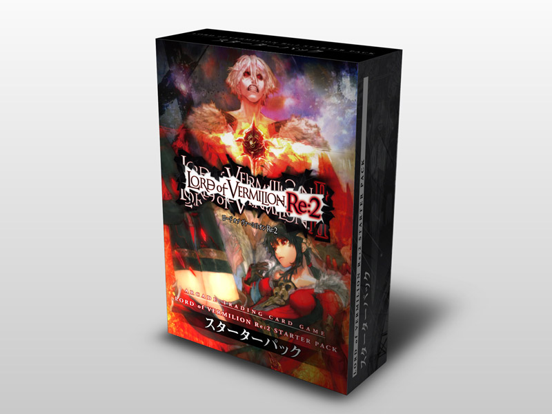 アーケードTCG「ロード オブ ヴァーミリオンRe:2」のスターターパックです(関連記事)。ゲームプレイに必要なNESYSカードやプレイヤーカード,使い魔カードなどが入っています。