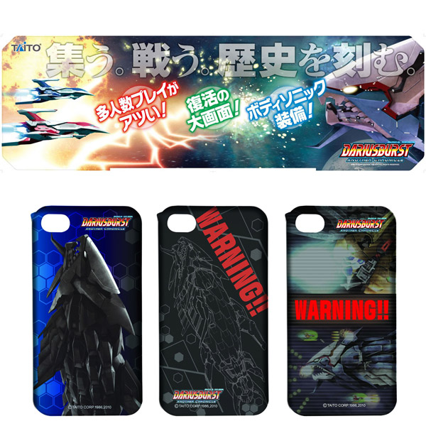 アーケード用横スクロールシューティング「ダライアスバースト アナザークロニクル」の筐体用POP(梱包時のサイズで900×610×50mm)と,iPhone4のオリジナルカバー3種をセットで。