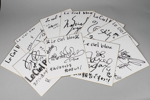 MMORPG「Le Ciel Bleu 〜ル・シエル・ブルー〜」(PC)出演声優のサイン入り色紙です。10枚をセットでプレゼント。