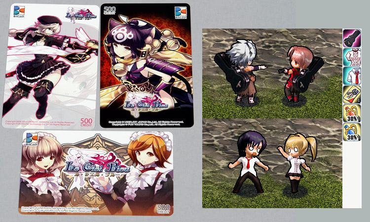 MMORPG「Le Ciel Bleu 〜ル・シエル・ブルー〜」(PC)のオリジナルBitCashカード3種(計1500円分)と,ゲーム内アイテム「背負いギター」「フリルレースブラウス(白)」「ネクタイシャツ」「特別サロンチケット」「EXPエーテル1.3」「クラスEXPエーテル1.3」を入手できるシリアルコードです。