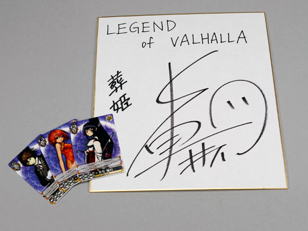 MMORPG「LEGEND of VALHALLA 〜レジェンド オブ ヴァルハラ〜」(PC)で「葬姫」を演じる中原麻衣さんのサイン入り色紙と,本作のプロモーションカード3枚をプレゼントします。