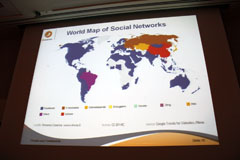 Chow氏は,世界的に見るとSNSはFacebookのリードが大きいと指摘する。もちろんアジア(Tencent・mixiなど)やロシア(V Kontakte),南米(ブラジルのOrkut)には,それぞれ固有の強さを持ったSNSが存在するが,やはりFacebookのリードは大きいようだ。