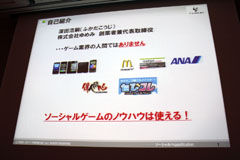 そして最後に氏は,オリジナリティの重要性を訴える。「釣りゲーム,農場ゲームのコピーでは,もう無理だ」という言葉は,逆にソーシャルゲームの現場もまた,流行ったゲームをコピーするだけの手法では追いつけないことを意識している証と言えるだろう。