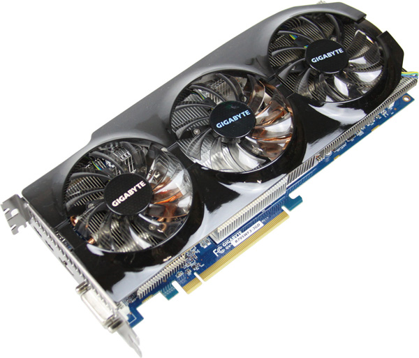 「WINDFORCE 3X」と名付けられた大型クーラーが目を引く,「Radeon HD 7950」搭載グラフィックスカード。GPUクロックがリファレンスの800MHzから900MHzへと引き上げられています(関連記事)。