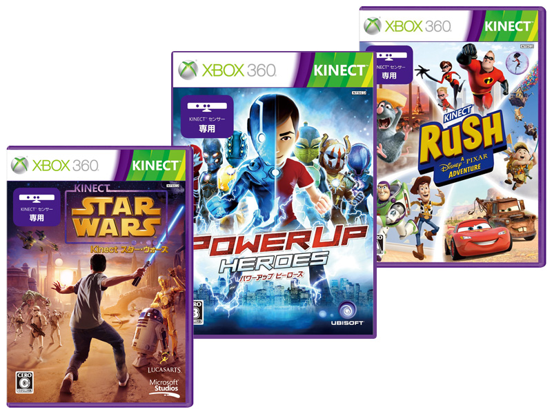 Kinect用タイトルのセットです。「Kinect スター・ウォーズ」(プレイムービー記事),「パワーアップ ヒーローズ」(関連記事),「Kinect ラッシュ:ディズニー/ピクサー アドベンチャー」(関連記事)の3本をプレゼントします。