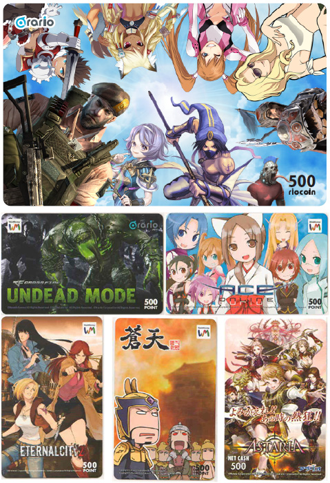 アラリオがサービスを行っている「クロスファイア」「エースオンライン」「エターナルシティ 2」「蒼天」のオリジナルWebMoneyカード(2000円分),「アスタリア」のオリジナルNetCashカード1枚(500円分),リオコインカード(500円分)をの計6枚をセットでプレゼントします。