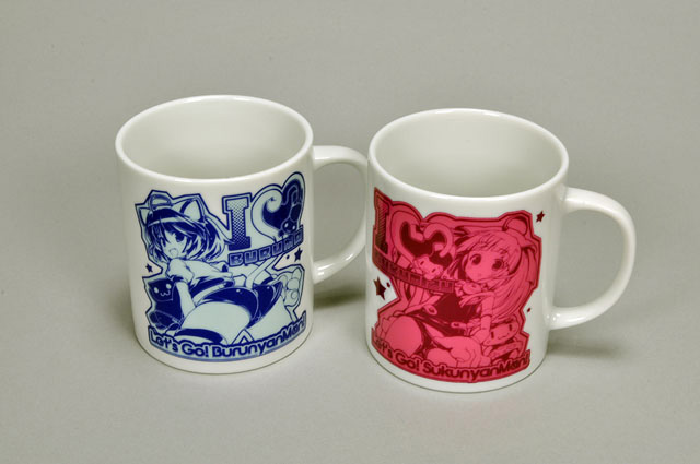 シューティングゲーム「それゆけ! ぶるにゃんマン Portable 〜とりもどせ!あいとせいぎときぼうのつにゃ缶〜」(PSP)の「ぶるにゃんマン」と「すくにゃんマン」が描かれたマグカップセットです(高さ:約9cm)。