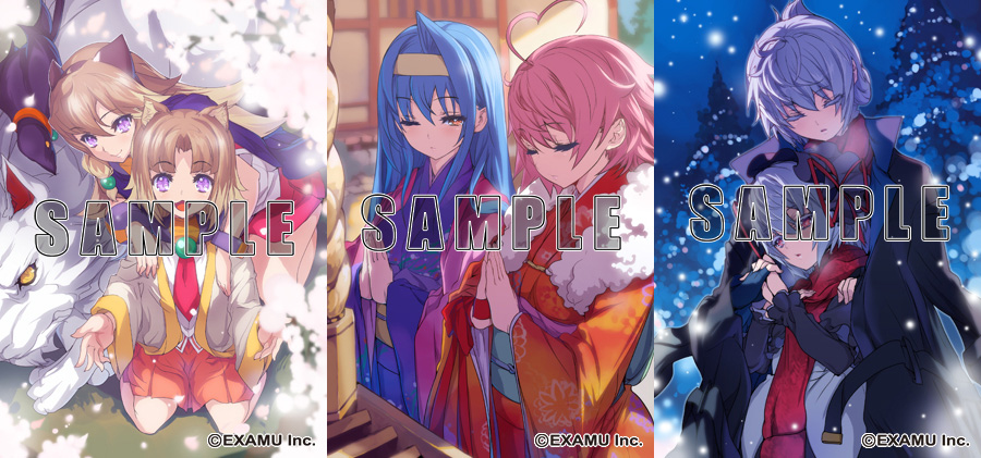 2D対戦格闘ゲーム「アルカナハート3」のB2タペストリー3種類セットです。犬若あかね&犬若なすな,愛乃はぁと&廿楽冴姫,リーゼロッテ・アッヒェンバッハ&ゼニア・ヴァロフが,それぞれ描かれています。