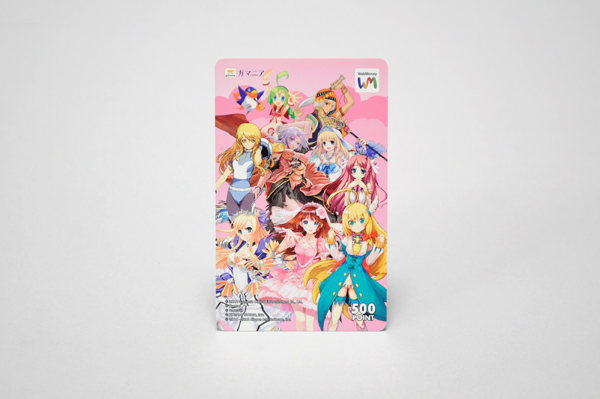 ガマニアデジタルエンターテインメントがサービスを行っている「Web ナイトカーニバル!」「Webファントム・ブレイブ」などのキャラクターが集合した,オリジナルWebMoneyカード(500円分)です。