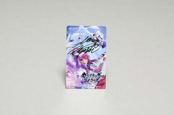 “オンラインマルチ対戦型ダブルガンアクションゲーム”「ガンスリンガー ストラトス」のサイン入りNESiCAです。サインは,主人公“風澄 徹”のキャラクターボイスを担当している阿部 敦さんのものとなっています。(関連記事)