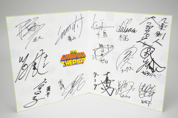 「恋戦隊LOVE&PEACE THE P.S.P. 〜パワー全開!スペシャル要素てんこもりでポータブル化大作戦である!〜」に出演している声優14人のサイン入り色紙です。
