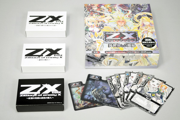 トレーディングカードゲーム「Z/X Zillions of enemy X」のカードセットです。ブースター第1弾「異世界との邂逅」1ボックス(20パック入り),3種類の構築済みデッキ,2種類の非売品デッキセパレーター,5種類のプレイヤーカードをセットでプレゼントします。