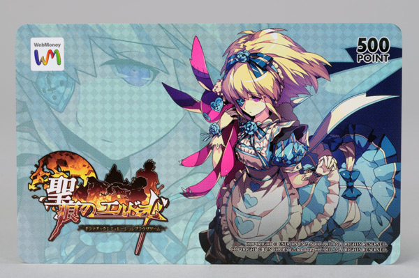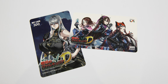 「戦場のヴァルキュリアDUEL」のオリジナルNETCASHカードです。「セルベリア」の描かれたWebMoneyカード2枚(1000円分)と,「リューナ」「ロレッタ」「マーヤ」の3姉妹が描かれた500円分のNETCASHカードを,セットでプレゼントします。