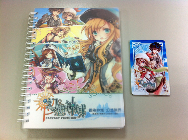 MMORPG「幻想神域 -Innocent World-」のグッズセットとシリアルコードです。登場キャラクター達が描かれたB5オリジナルノートとUSBメモリースティックに加えて,ゲーム内で「幻神・アルテミス」がもらえるシリアルコードをセットでプレゼントします。