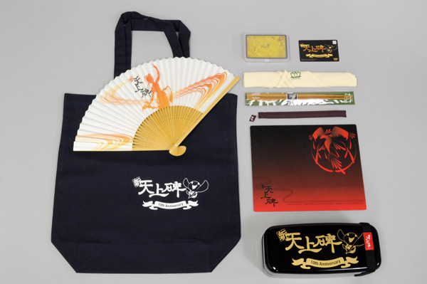 MMORPG「新・天上碑」のオリジナルグッズです。オリジナルWebMoneyカード(1000円分),弁当箱,トートバッグ(サイズ:約35×30cm),扇子,耳かき,トランプ,箸,マウスパッド(サイズ:約18cm×約22cm)をセットにしてお届けします。