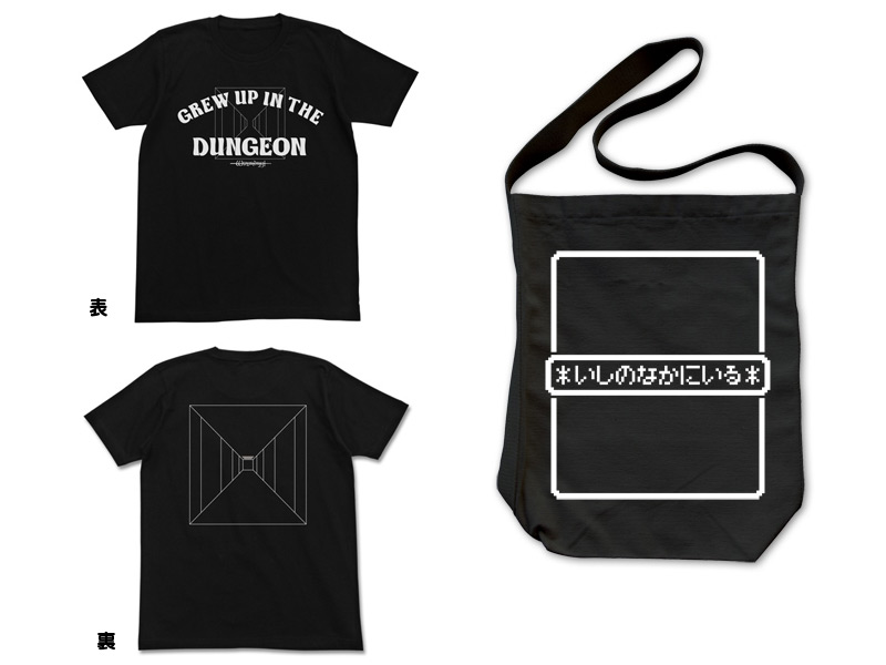 「Wizardry Online」のオリジナルグッズです。ワイヤーフレームのダンジョンがプリントされたTシャツ(Mサイズ)と,絶望のメッセージ「*いしのなかにいる*」が書かれたトートバッグ(サイズ:約40cm×約36cm)をセットでお届けします。