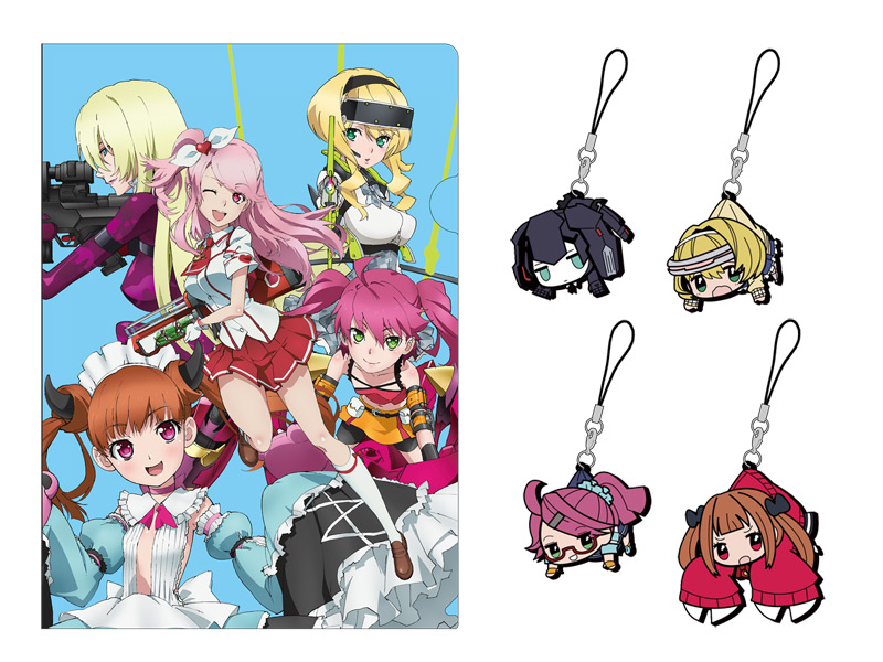 アーケード用オンライン対戦アクション「ガンスリンガー ストラトス」の女性キャラクター達がデザインされたA4クリアファイルと,つままれた姿が可愛らしいストラップ4種のセットです。