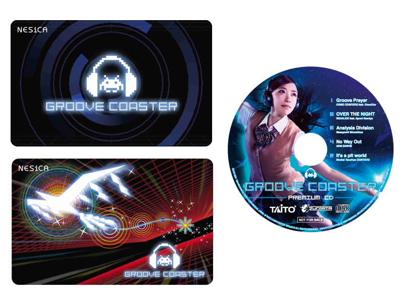 音楽ゲーム「グルーヴコースター」のNESiCAカード1枚と,「Groove Prayer 」「OVER THE NIGHT」「Analysis Division」 「No Way Out」 「It's a pit world」 の5曲が収録されたプレミアムCDのセットです。※NESiCAカードのデザインは選べません。