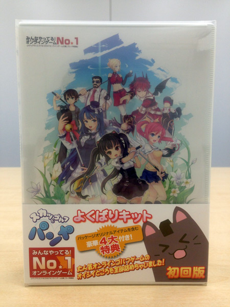 オンラインゴルフゲーム「スカッとゴルフ パンヤ」のクライアントパッケージです。人気キャラクター「クー」のお嬢様風ワンピース衣装をはじめとするゲーム内アイテムや,「ポンタハンドタオル」「パンヤブックレット」などのリアルアイテムが同梱(関連記事)。
