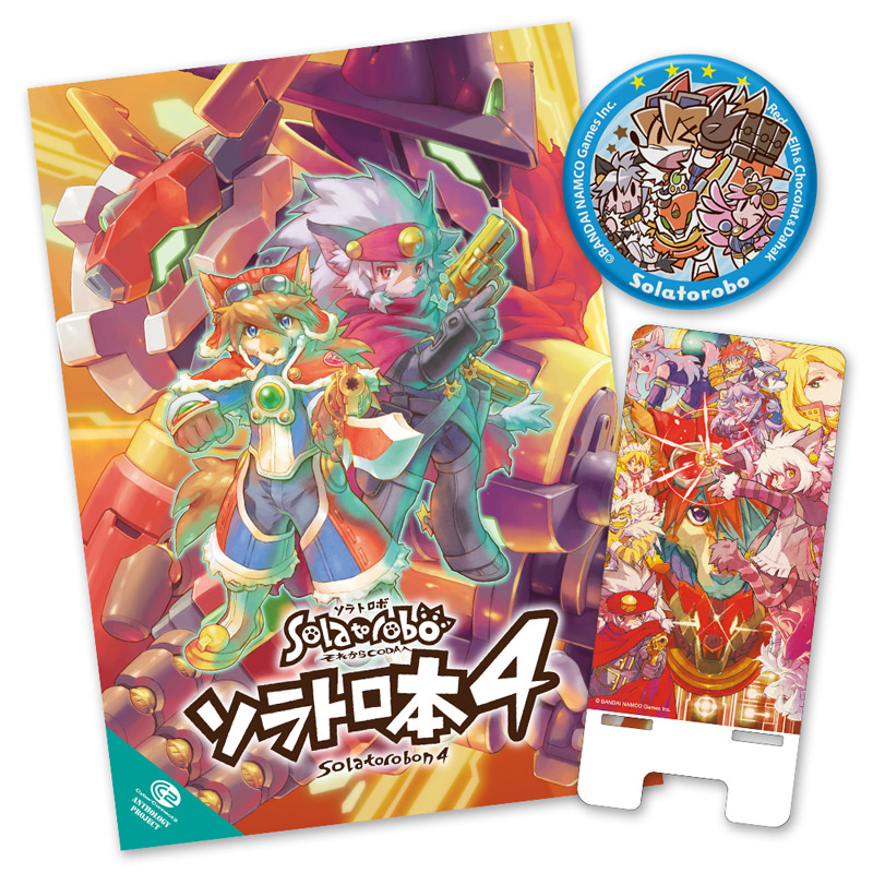 ニンテンドーDS用ソフト「Solatorobo それからCODAへ」のグッズセットです。セット内容は冊子(B5サイズ・46P・フルカラー),スマホスタンド,缶バッジ(約7.6cm)になります。