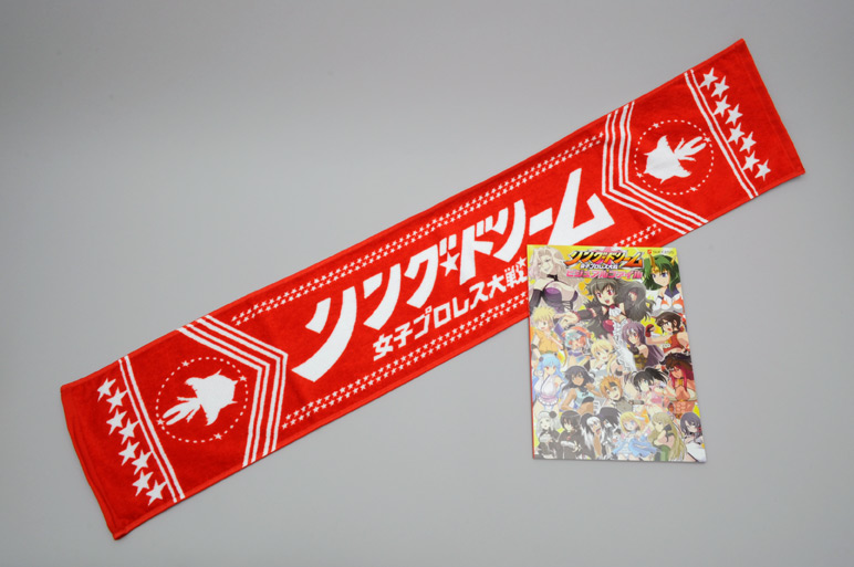 ブラウザゲーム「リング☆ドリーム〜女子プロレス大戦〜」のマフラータオル(約21cm×110cm)と女子レスラーや未公開イラスト,声優インタビューなどを収録したビジュアルブック(A4サイズ,64ページ[カラー48ページ+モノクロ16ページ])のセットです。